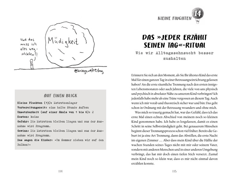Darin hat Vera zwanzig Fluchten für ein entspannte(re)s Familienleben versammelt, die man in seinen Alltag integrieren und vielleicht sogar dauerhaft installieren kann um Kraft zu tanken und regelmäßig das Gefühl zu verspüren: Ich bin gut genug! Wir machen das gut genug! Unser Leben ist gut genug!