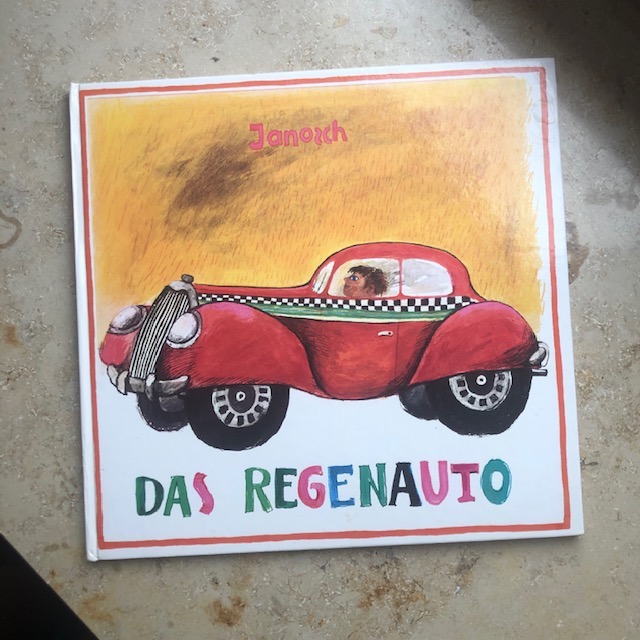 Mein liebstes Kinderbuch heißt Das Regenauto und ist von Janosch. Es geht in dem Buch um den kleinen Jungen Wanja, der bei seinen Großeltern lebt und von ihnen zum siebten Geburtstag ein Holzauto geschenkt bekommt. Wanja wollte eigentlich ein richtiges Auto, ist deshalb enttäuscht über das Kleine aus Holz und da erzählt ihm seine Großmutter, dass das Auto verzaubert ist und heimlich wachsen kann. Immer, wenn das Kind nun im Regen sitzt und mit dem Auto spielt, wächst es. Der Junge und das Auto fahren dann weg, sie erleben viele Abenteuer und haben lustige Begegnungen. Der Zauber macht die Welt von Wanja groß, die vorher so klein und arm war.