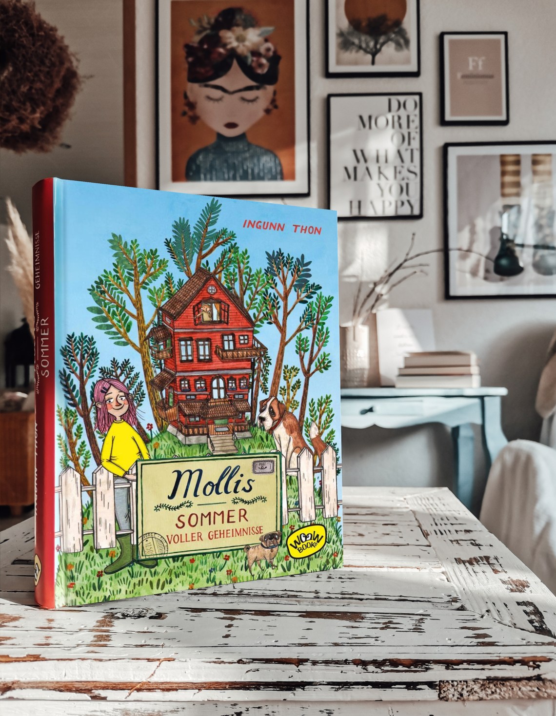 Deshalb mag ich Mollis Sommer voller Geheimnisse so sehr. Denn hier gibt es statt Glitzer einen mies gelaunten Ziegenbock. Molli ist zehn Jahre alt und eine echte Erfinderin. Sie baut aus allem möglichen Krimskrams coole Sachen zusammen. Zum Beispiel ihre Zahnbürste, die sie aus einem Handmixer konstruiert hat. Und dann ist da noch Gro, Mollis allerbeste Freundin, die nur Unsinn im Kopf hat. Die Mädchen vertrauen sich alles an, auch, dass Molli den Freund ihrer Mama furchtbar ätzend findet. Mollis kleiner Halbbruder ist zwar süß, aber ihre Mama scheint kaum noch Zeit für sie zu haben. Wenigstens ist auf Gro immer Verlass. Doch da gibt es etwas, das Molli sogar vor ihrer besten Freundin verbirgt. Und als die Mädchen im Birkenwald auf einen geheimen Briefkasten stoßen, in dem sie eine an Molli adressierte Postkarte finden, scheint Mollis Geheimnis sie zu verschlingen. Molli weiß nicht mehr, was sie glauben soll, und begibt sich auf die Suche nach ihrer Vergangenheit und zu sich selbst. Manche Dinge lassen sich nun mal nicht mit Worten erklären. Man muss sich ihnen stellen, um seinen Seelenfrieden zu finden. Das Ende dieser Geschichte ist kein Glitzer mit Vanilleduft. Aber es ist ein ehrliches Ende und deshalb ein gutes.