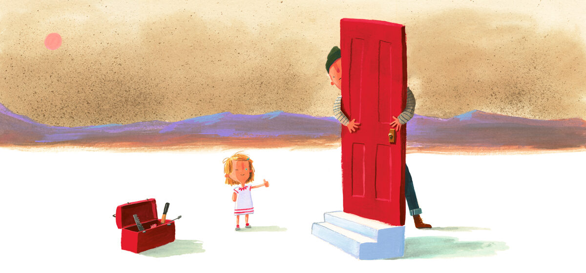 Hier sind wir schrieb Oliver Jeffers, als seine Tochter Mari geboren wurde, das Bilderbuch stellt ihr und uns die Welt vor, in die sie hineingeboren wird. In Was wir bauen ist Olivers Tochter nun schon ein bisschen größer und die beiden machen sich daran, diese Welt zu gestalten, was ich einen wirklich klugen Schachzug finde, denn natürlich haben wir Menschen mehr oder weniger die Möglichkeit, die Welt mitzugestalten; wir müssen diese nicht hinnehmen, wie sie ist: