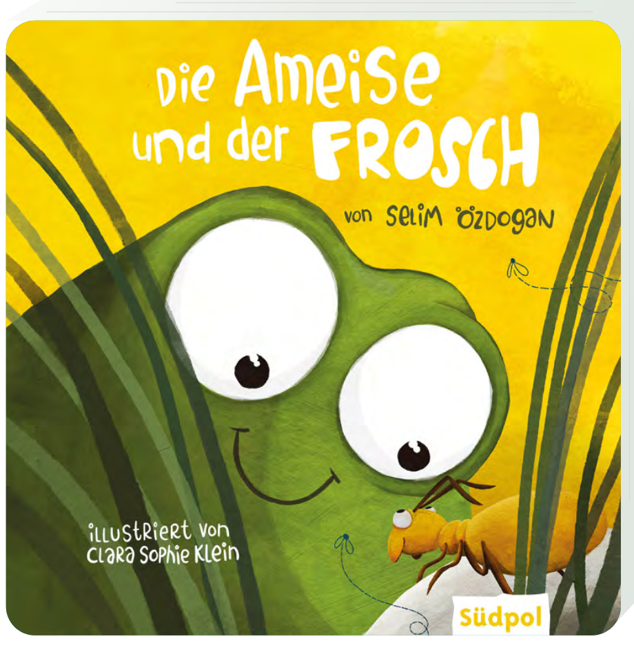 Es ist so einsam im Sattel, seit das Pferd tot ist – so lautet der Titel des Debüts von Selim Özdogan, 1995 war das. 2007 brachte mich der Titel während des Schreibens an meiner Magisterarbeit mehrfach zum Lachen wenn er bei meinen Recherchen immer wieder auftauchte. Seitdem ist viel Zeit vergangen, Selim ist nach diesem überaus erfolgreichen Debüt Schriftsteller geworden und hat damit seinen Kindheitstraum erfüllt, ich bin Literaturwissenschaftlerin, die immernoch nicht Die Buddenbrooks gelesen hat, und heute treffen wir uns hier auf dem digitalen (Vor-) Lesesofa zum ersten Mal, denn in diesem Monat erscheint im Südpol Verlag Selims erstes Bilderbuch: Die Ameise und der Frosch, ein Pappbilderbuch für die Kleinsten über Freundschaft und Verschiedenheit.