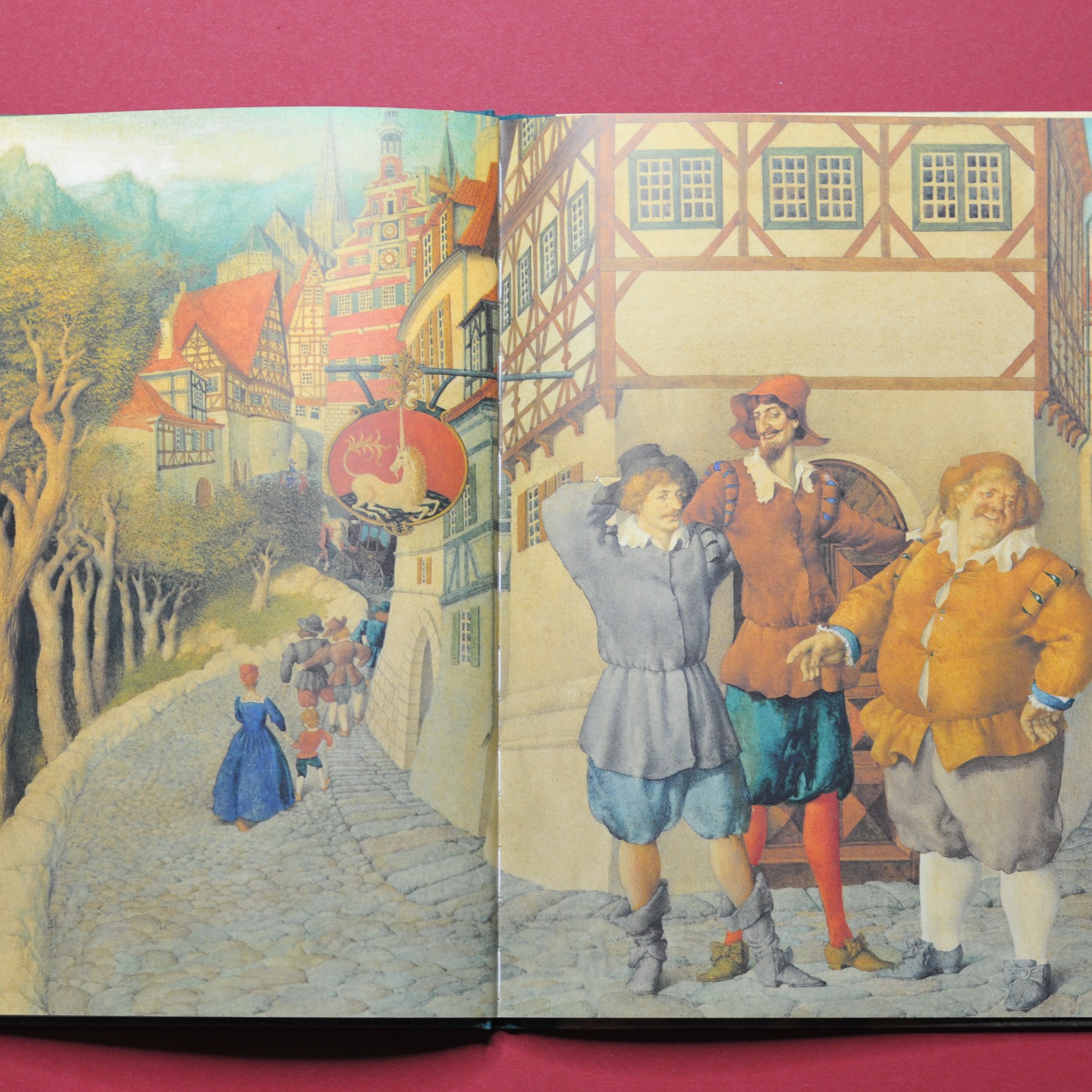 Das zweite Buch aus meiner Kindheit war eine Sammlung russischer Volksmärchen mit Illustrationen von Nikolai Ustinov. Ustinov ist ein Meister der Landschaften, der stets eine unübertroffene Atmosphäre und Stimmung seiner Illustrationen zaubert. Als Illustratorin lerne ich auch heute viel über ungewöhnlichen Perspektiven und Kompositionen aus seinen Büchern. Gennadij Spirin gehört zu den modernen Klassikern der russischer Illustration und es gibt sehr viele wunderschöne Bücher, die er illustrierte. Hier habe ich das Buch von Otfried Preußler Das Märchen vom Einhorn ausgesucht, weil ich es auch auf Deutsch besitze, jedes Buch von Spirin ist aber ausnahmslos ein Meisterwerk.