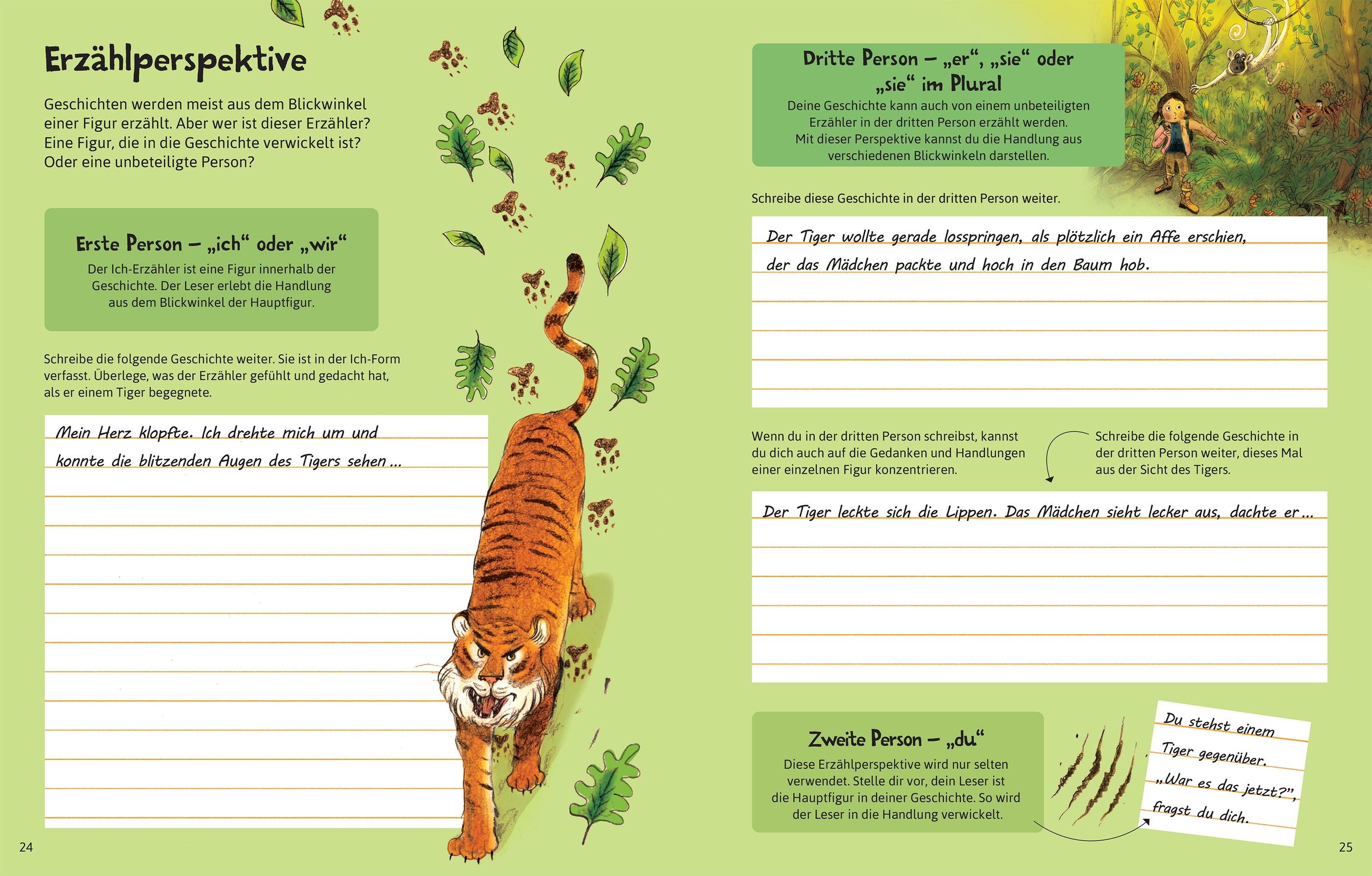 Was braucht man alles für kreative Texte? Man muss sich über die Figuren und die Erzählperspektive im Klaren sein, knackige Überschriften sind meist von Vorteil und eine bildhafte Sprache lässt die Leser*innen voll und ganz in die Geschichte eintauchen. Und natürlich gibt es neben fiktiven Erzählungen viele andere Textgattungen wie Blogartikel, Gedichte oder auch Werbetexte und Comics. Das alles wird in Text-Schmiede auf jeweils einer Doppelseite sehr kreativ behandelt, Kinder ab 9 Jahren können sich hier so richtig austoben – was zum Beispiel Monsieur 2, dessen Rezensionen Ihr ja bereits kennt, schon ausgiebig getan hat! (Hier entlang geht’s zum Blick ins Buch.)