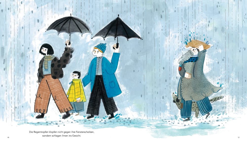 Die Protagonistin entschließt sich, jedes Jahr an Weihnachten soziale Organisationen zu besuchen und gesammelte Kleidung und Nahrungsmittel zu verteilen. Dabei kommt sie mit vielen wohnungslosen Männern ins Gespräch. Positiv: Durch die Gespräche bekommen diese eine Persönlichkeit und eine Geschichte und treten so aus der gesichtslosen Gruppe „die Obdachlosen“ heraus. Kleines Manko: Warum muss die Hilfe ausgerechnet an Weihnachten stattfinden? Ich habe mit der Spendenmentalität an Weihnachten ein kleines Problem, für mich hat es etwas von modernem Ablasshandel, aber vielleicht geht es ja nur mir so. Also: Helfen kann man das ganze Jahr. Nichtsdestotrotz ein sehr feinfühliges Bilderbuch, um Kinder über Wohnungslosigkeit zu informieren und zu sensibilisieren, denn allzu oft herrscht noch die Meinung vor, „die seien alle selbst Schuld“.