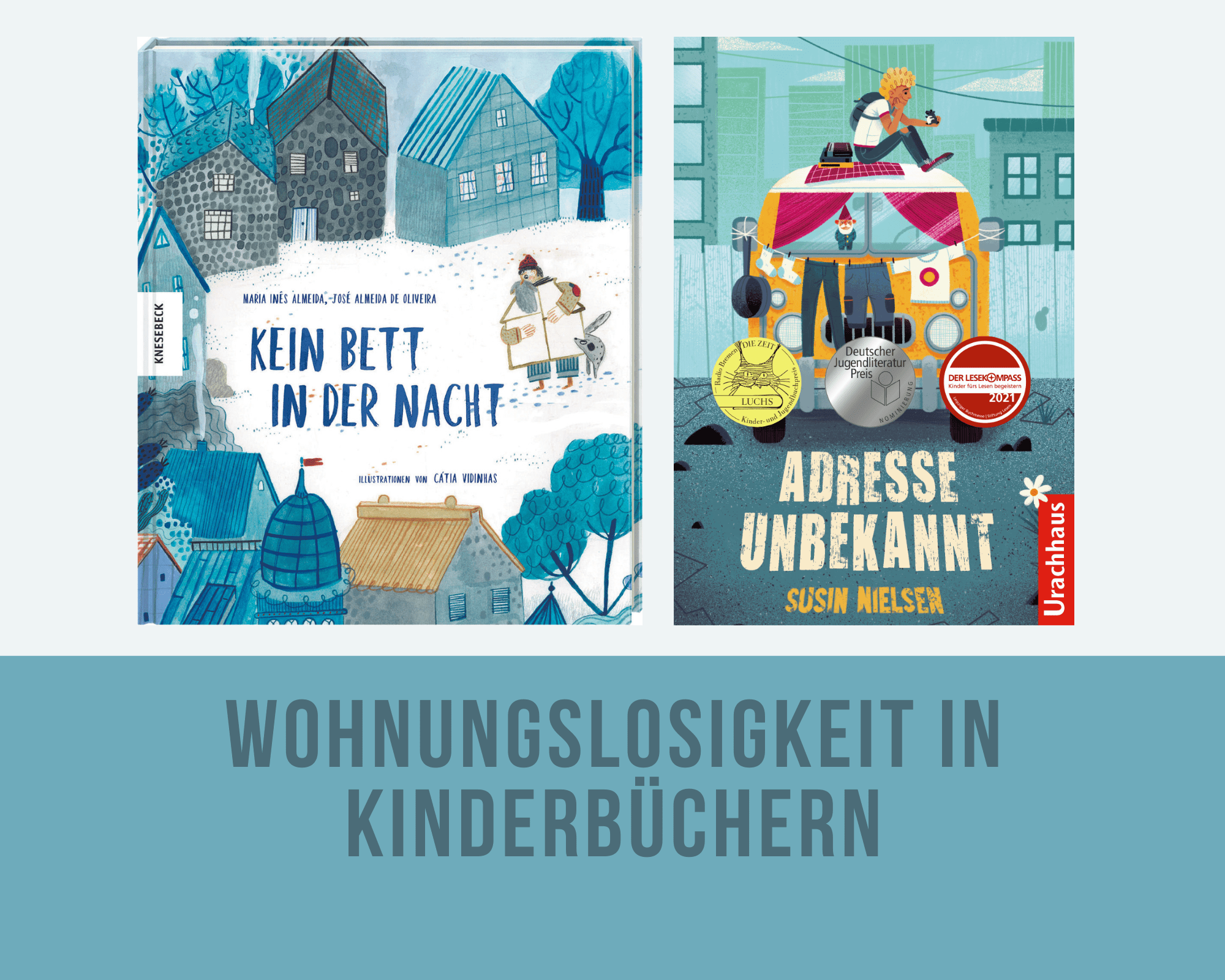 Wie schnell es gehen kann, dass auch Kinder keinen festen Wohnsitz mehr haben können, zeigt die kanadische Autorin Susin Nielsen in Adresse unbekannt: Ich-Erzähler Felix erzählt einer Polizistin und uns Leser*innen die Geschichte von seiner chaotischen Mutter und sich selbst und wie es dazu kam, dass die beiden innerhalb eines Jahres von einer Eigentumswohnung zum Leben im Van ohne feste Adresse, ohne Waschgelegeneheit und ohne Klo (Tollerweise ein zentrales Thema im Buch!) kamen.
