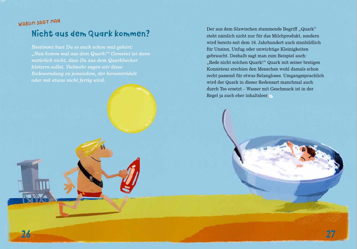 Steht Ihr auch manchmal auf dem Schlauch, warum Ihr in bestimmten Situationen einen Zahn zulegen sollt und in anderen wiederum jemand den Löffel abgibt? Dann ist dieses Buch für Euch genau richtig: Warum der Ohrwurm einen Frosch im Hals hat klärt über Redewendungen und Kuriositäten der deutschen Sprache auf. Die Macher*innen des Familienmagazins Warum! haben sehr viel Erfahrung darin, Kinderfragen zu beantworten, in ihrem ersten Buch widmen sie sich akribisch den geflügelten Worten und kommen dabei so richtig aus dem Quark: Da wird nichts durch die Blume gesagt, wir müssen ihnen auch nichts aus der Nase ziehen und nach der Lektüre könnt Ihr bezüglich Angeber*innenwissen richtig auf die Kacke hauen, versprochen!